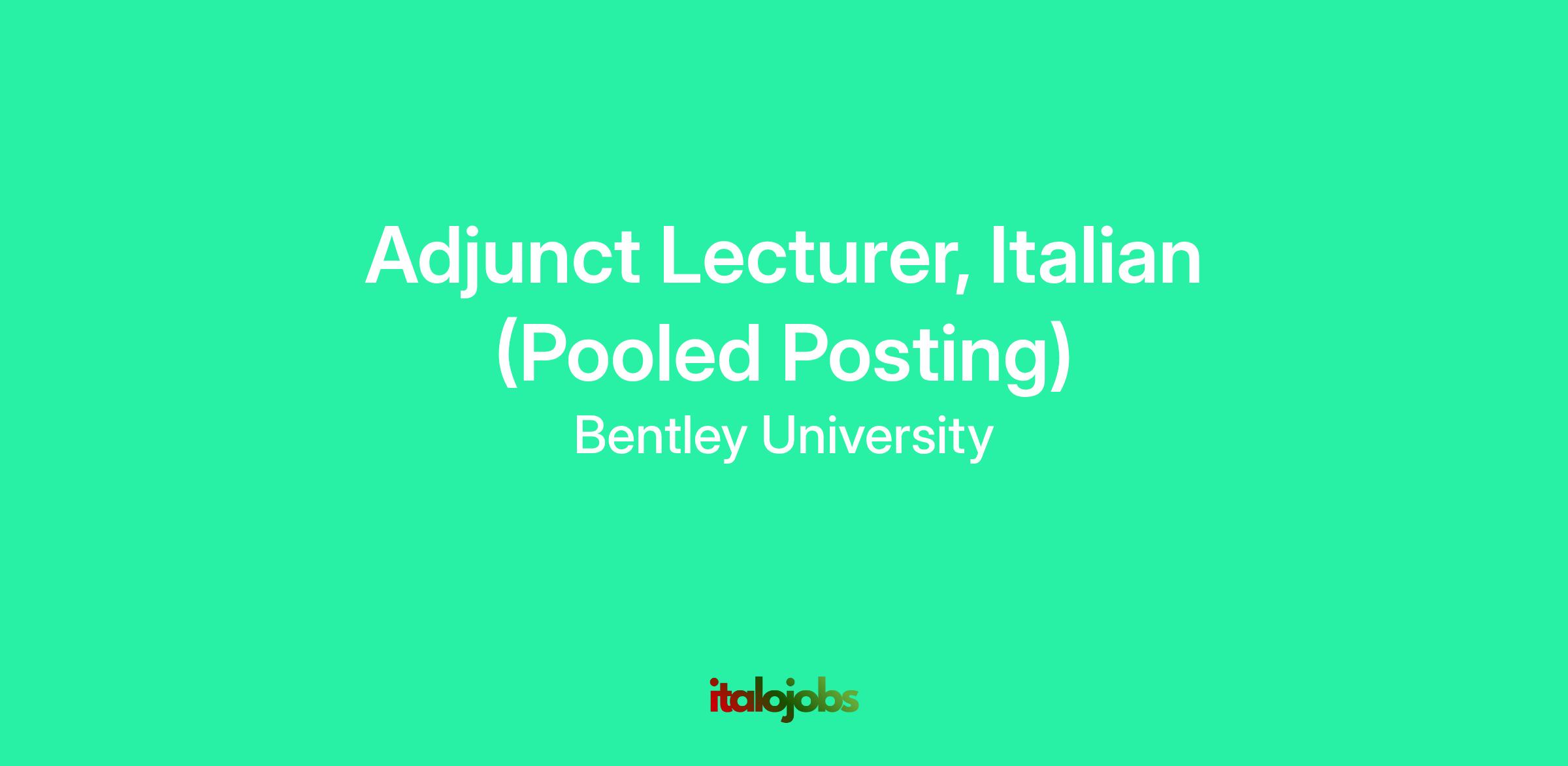 The Modern Languages Department at Bentley University is accepting applications to build a pool of instructors for possible future part-time Adjunct Lecturer, Italian assignments. The department chairperson will review applications as vacancies become available.Essential Functions: