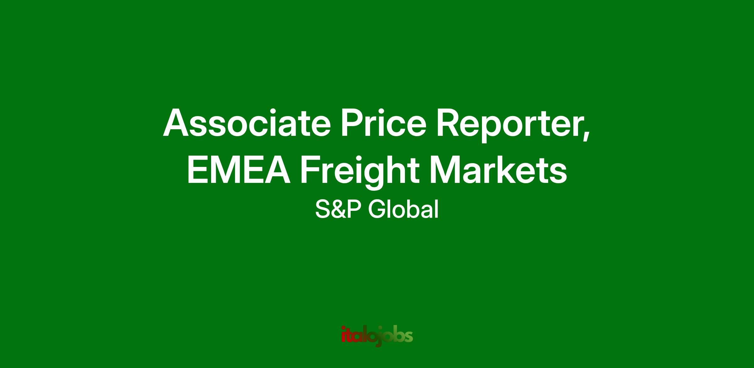 The Role: The Price Reporter (Associate Editor) for EMEA Freight Markets is a reporter who takes responsibility for day-to-day reporting on the shipping and freight markets in the Western hemisphere.