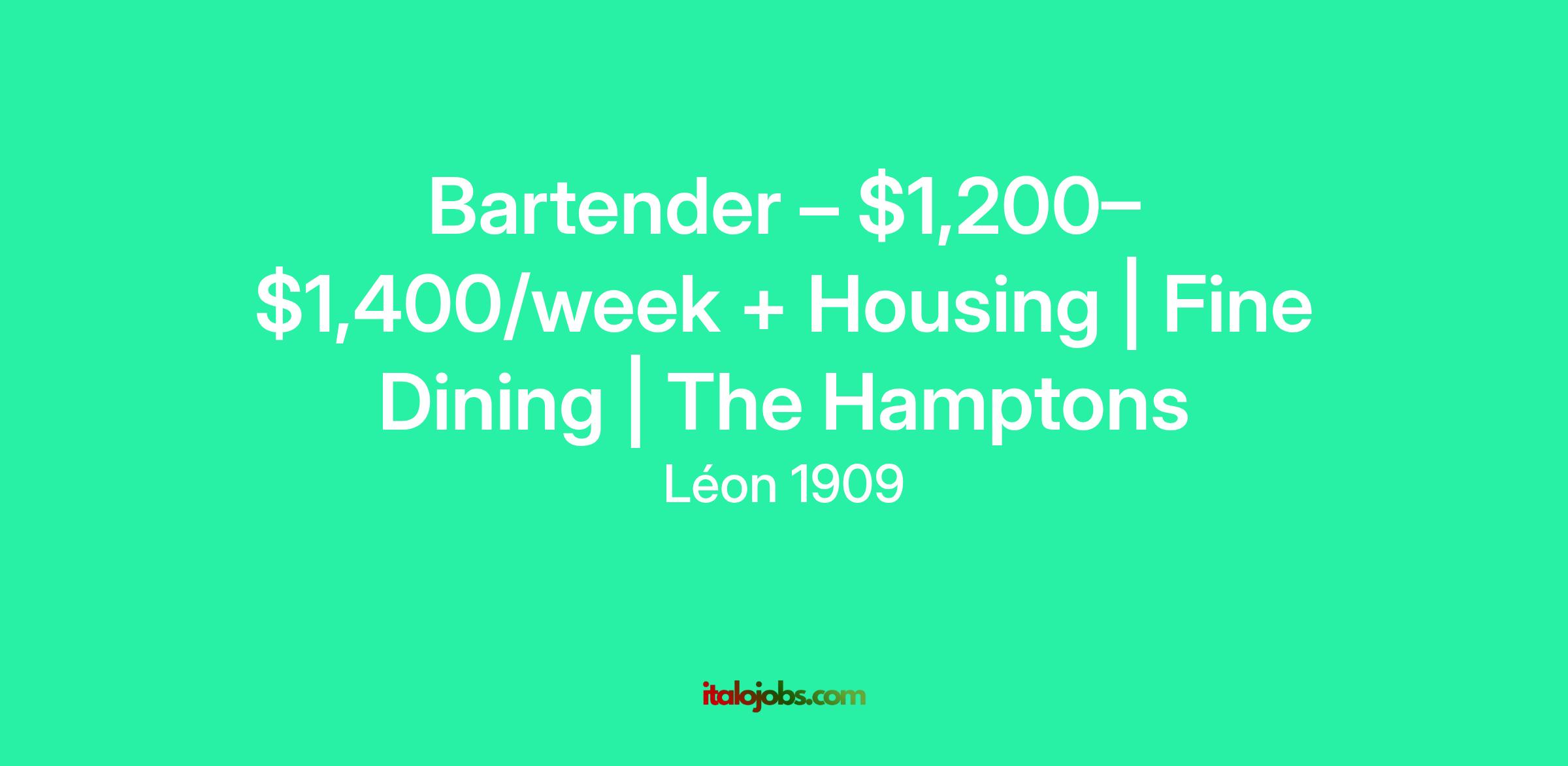 Fine-dining bartender role in the Hamptons | $1.2–$1.4 K per week + housing + weekly pay