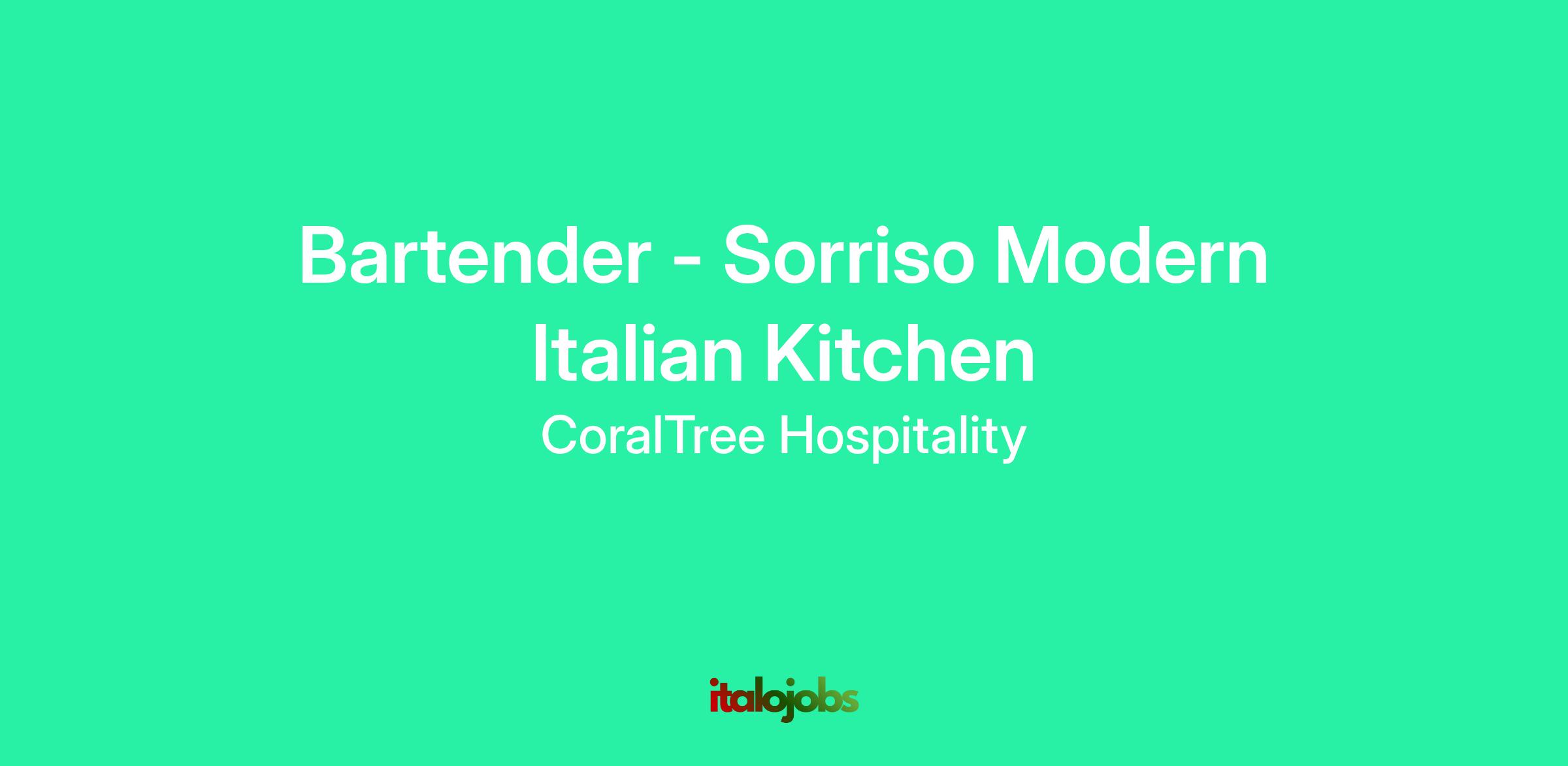 The bartender will be responsible for preparing beverages for servers and guests in a speedy, efficient, friendly, and professional manner at Sorriso Modern Italian Kitchen.