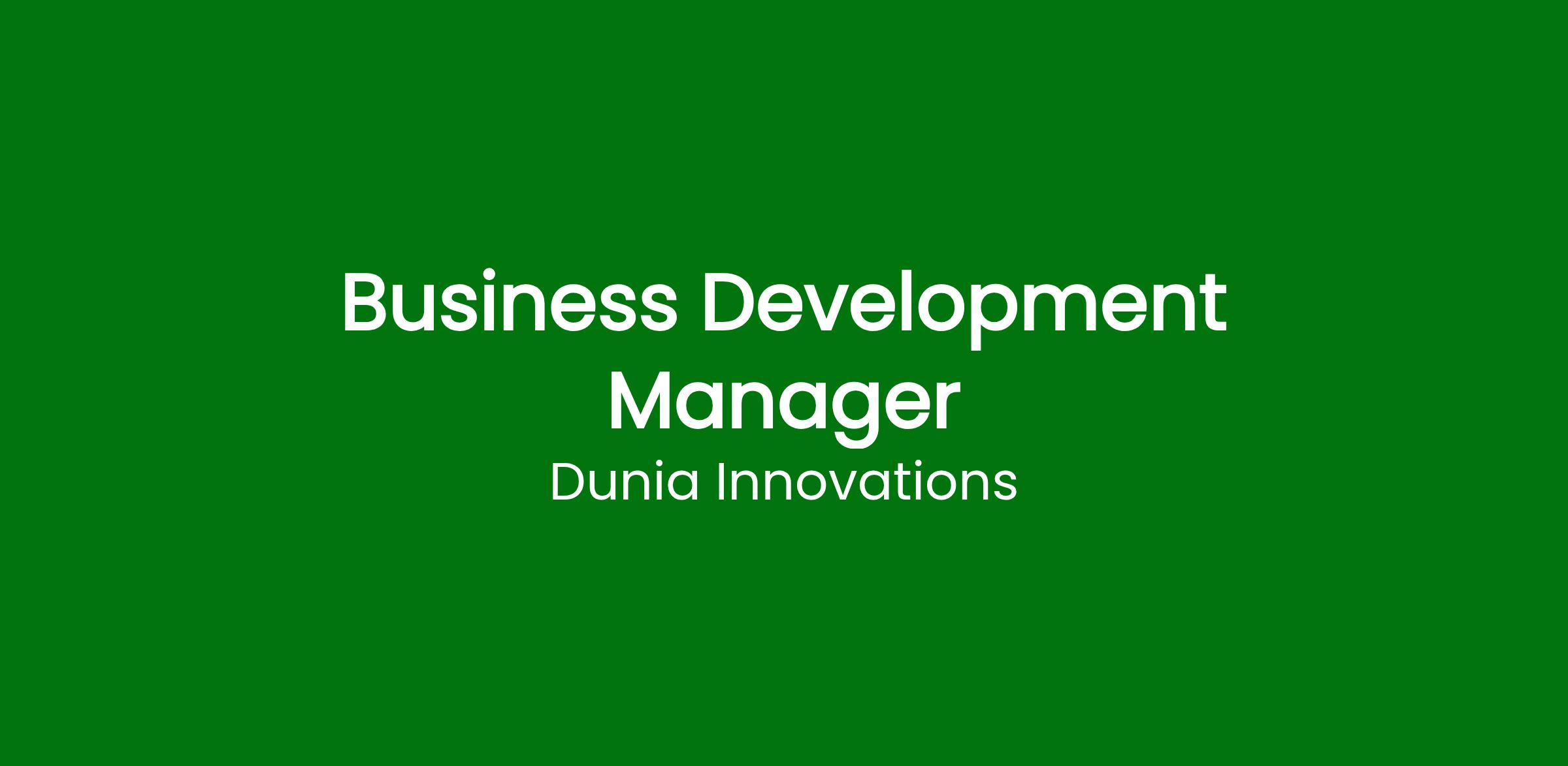 Bridge Science and Market to Deliver Scalable Climate Impact At Dunia, we are transforming materials innovation to accelerate climate solutions. Our platform IRIS turns breakthrough research into scalable, real-world products. As our Business Development Manager, you will work with our VP of Commercial and Co-Founders with a focus on operationalizing commercial efforts to deliver impact and value. You'll be the connection between our customers and internal teams, to develop new projects from scope to final agreement, to keep these projects moving and the expectations aligned, address challenges, develop new opportunities and focus on delivering overall success.