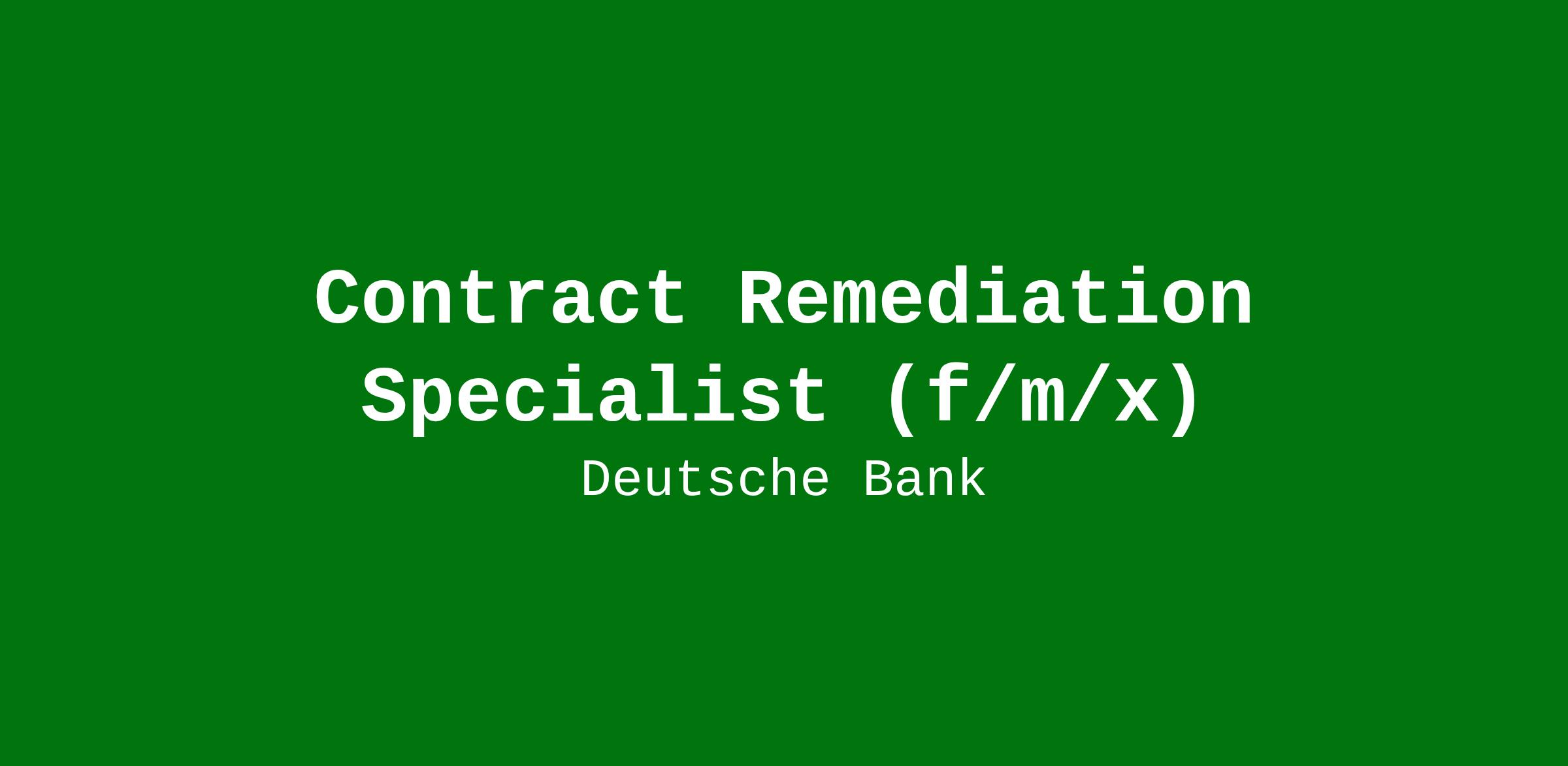 The Contracts Remediation Specialist represents DB towards the vendor and works effectively with internal stakeholders to secure a finally agreed contract. He/ She will be part of a cross-divisional bank-wide team, expected to work globally and ensure effective communication and engagement with stakeholders at all levels to support the overall business strategy.