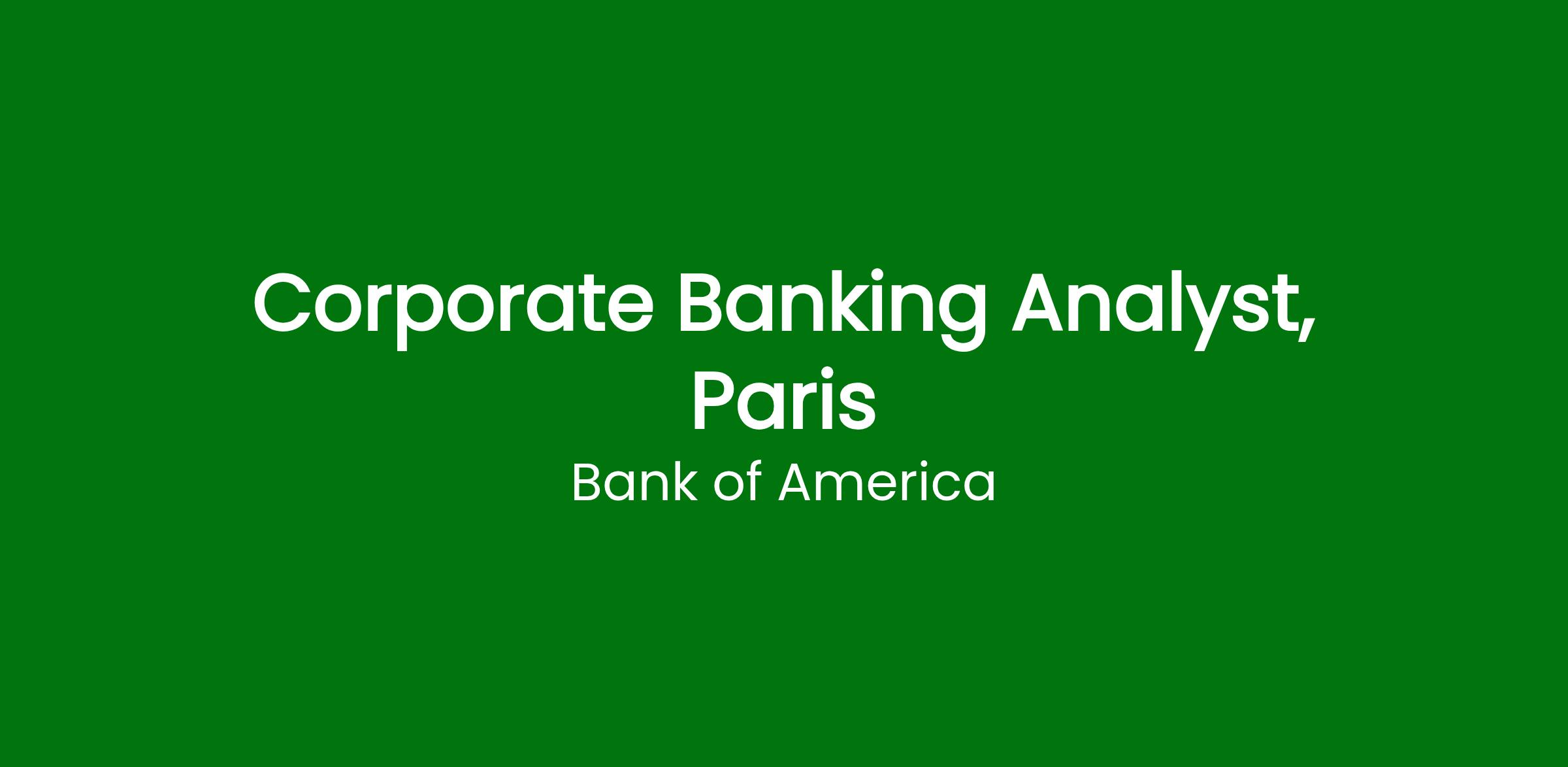 Job Title: Corporate Banking Analyst, Paris