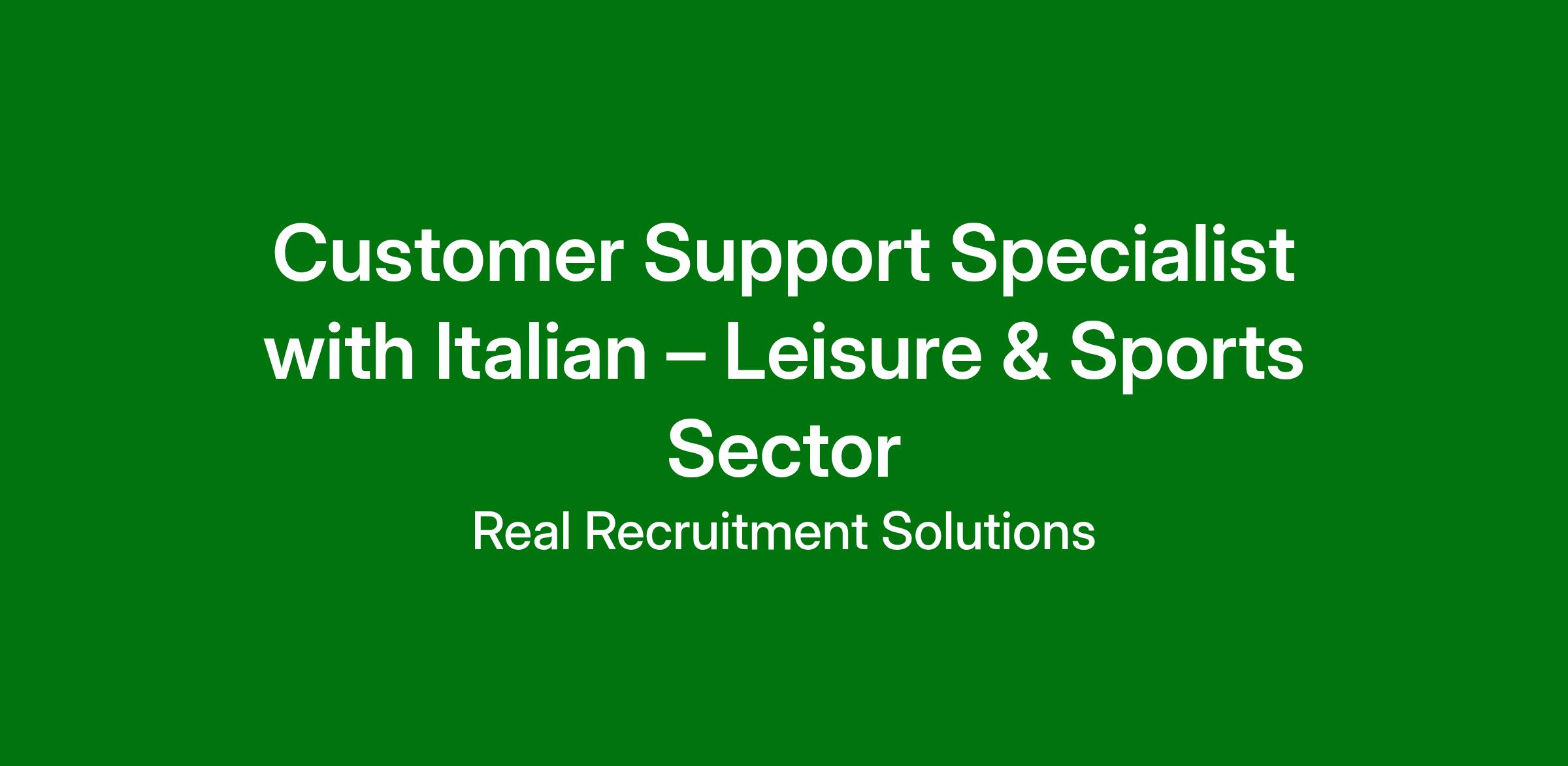 We are looking for a Customer Support Specialist to join our team in the leisure and sports sector. This role requires excellent communication skills in Italian (C1) and good working knowledge of English (B1).