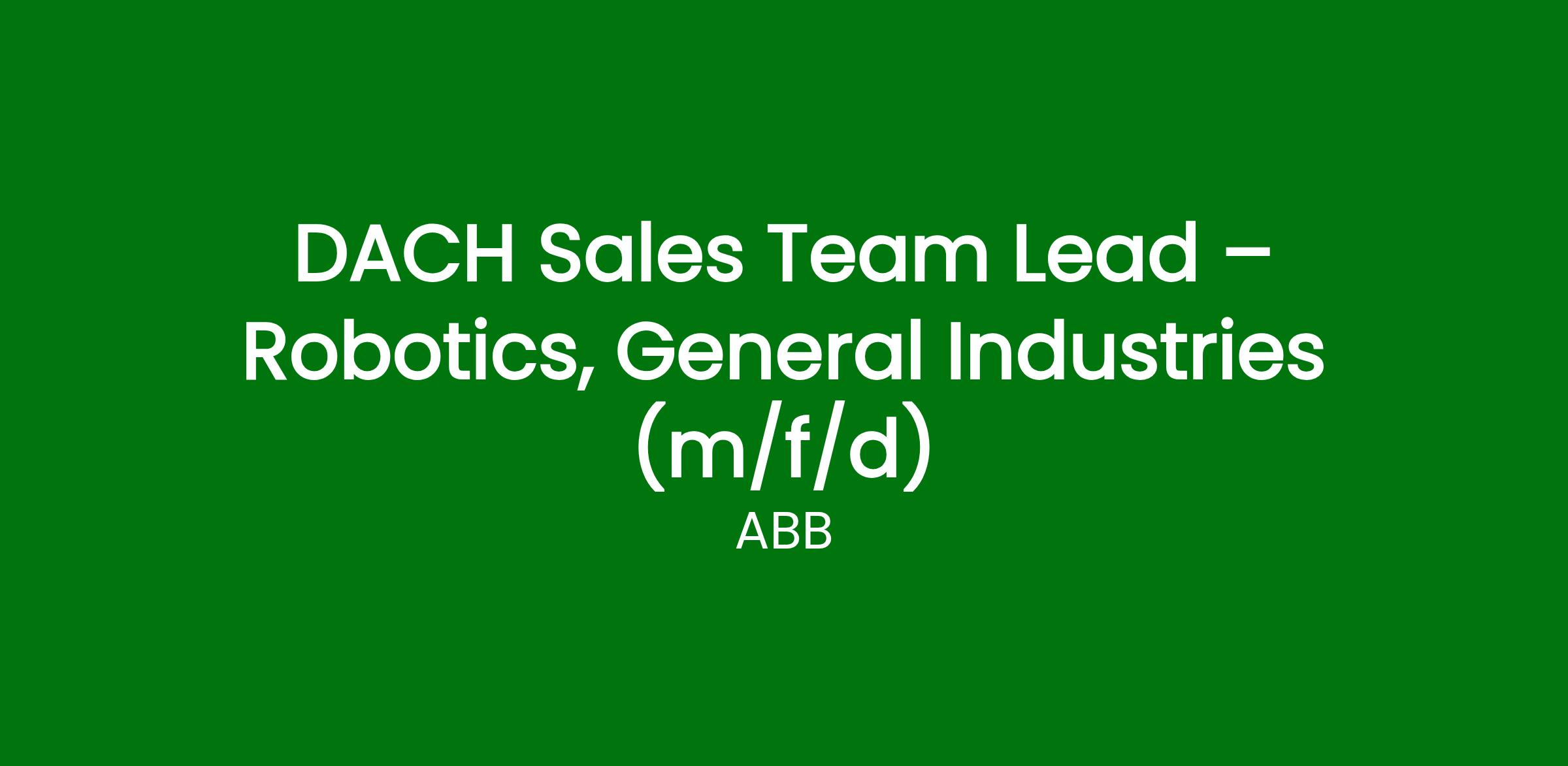 This role contributes to the Robotics Business Segment – General Industries in DACH.