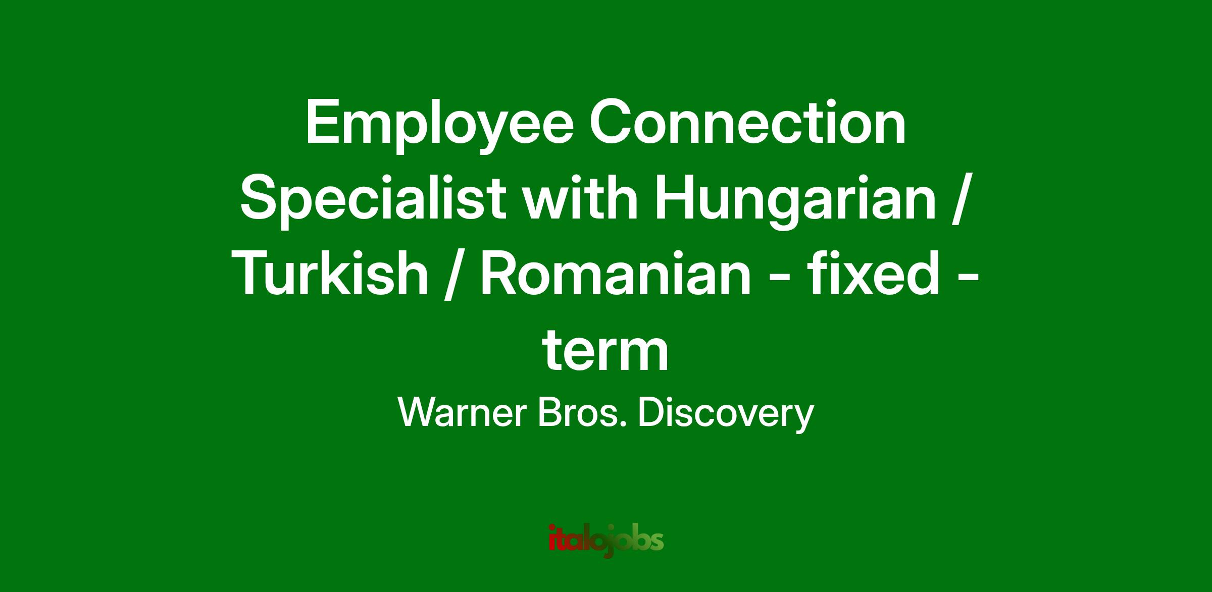 Warner Bros. Discovery is searching for an Employee Connection Specialist to join the Global Business Services (GBS) People & Culture (P&C) Operations team.