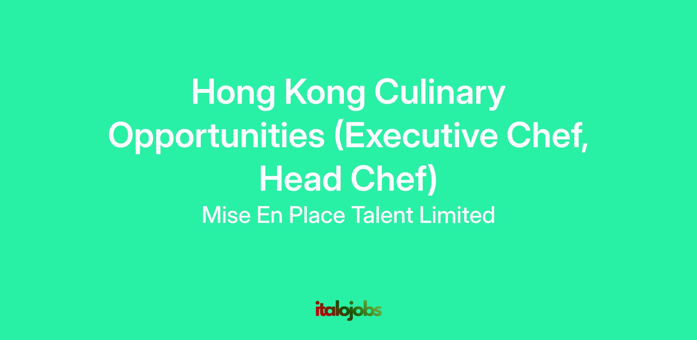 Hong Kong Culinary Opportunities (Executive Chef, Head Chef)