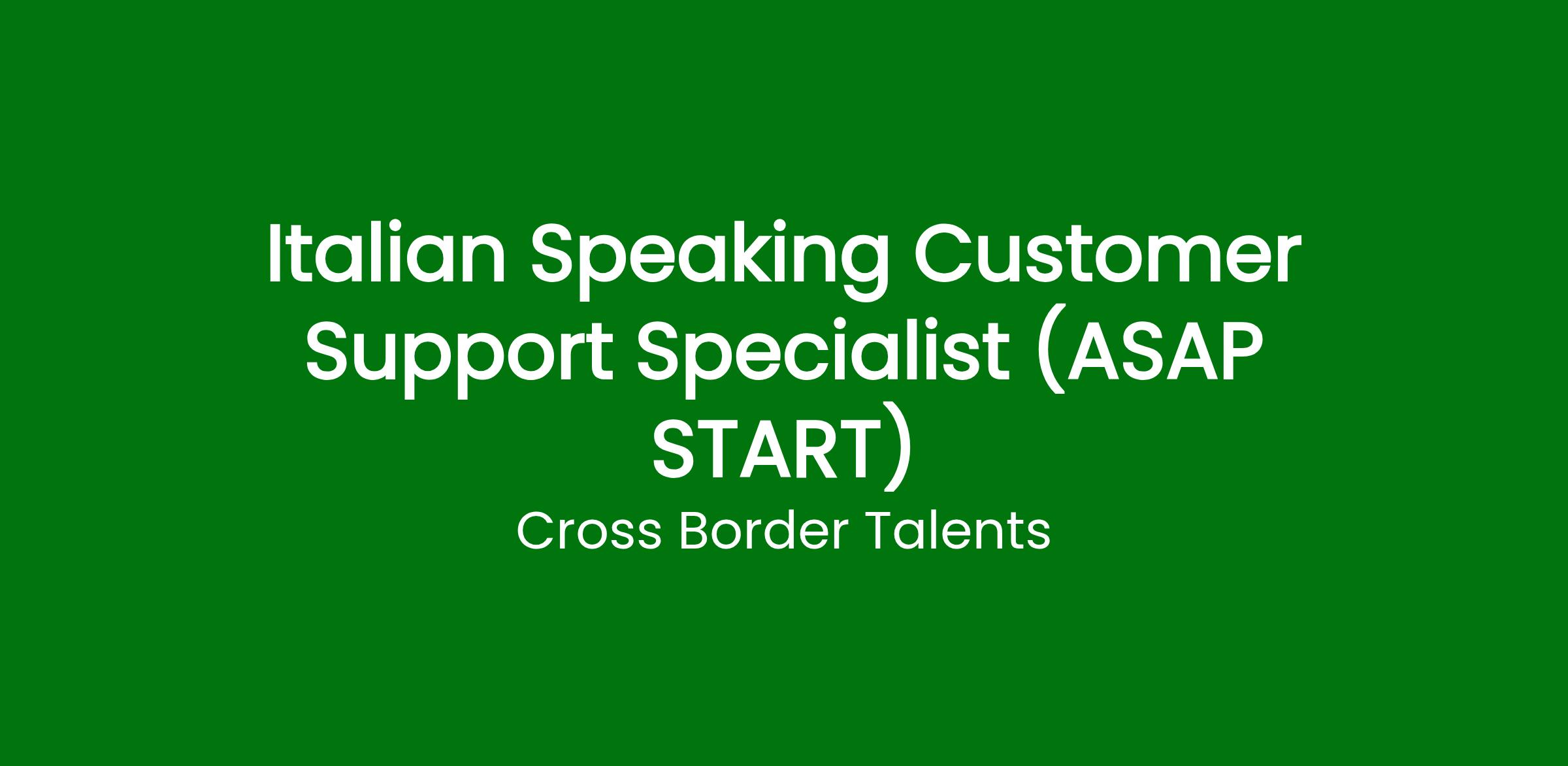 Italian Speaking Customer Support Specialist (ASAP START)