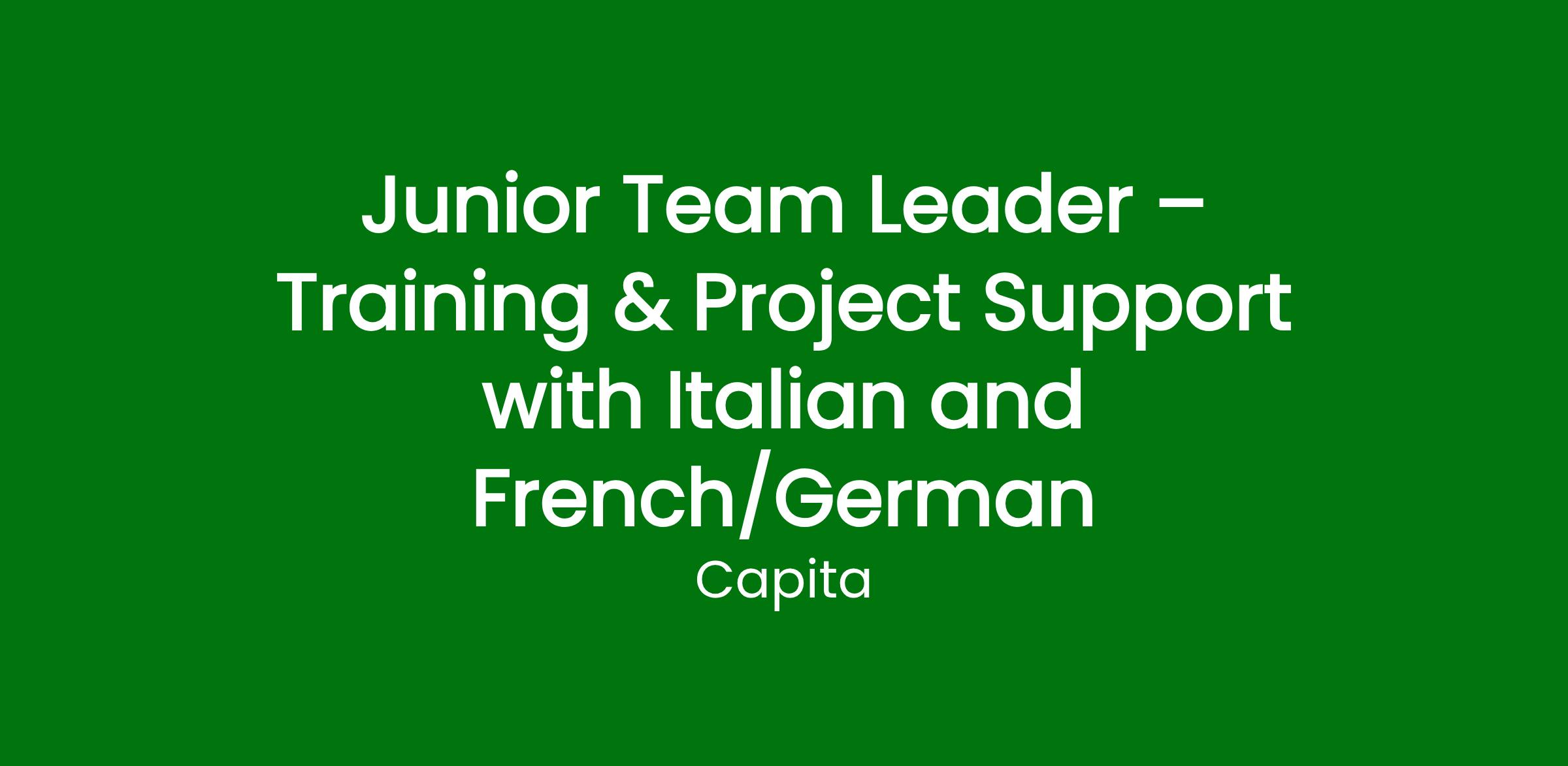 Junior Team Leader – Training & Project Support with Italian and French/German