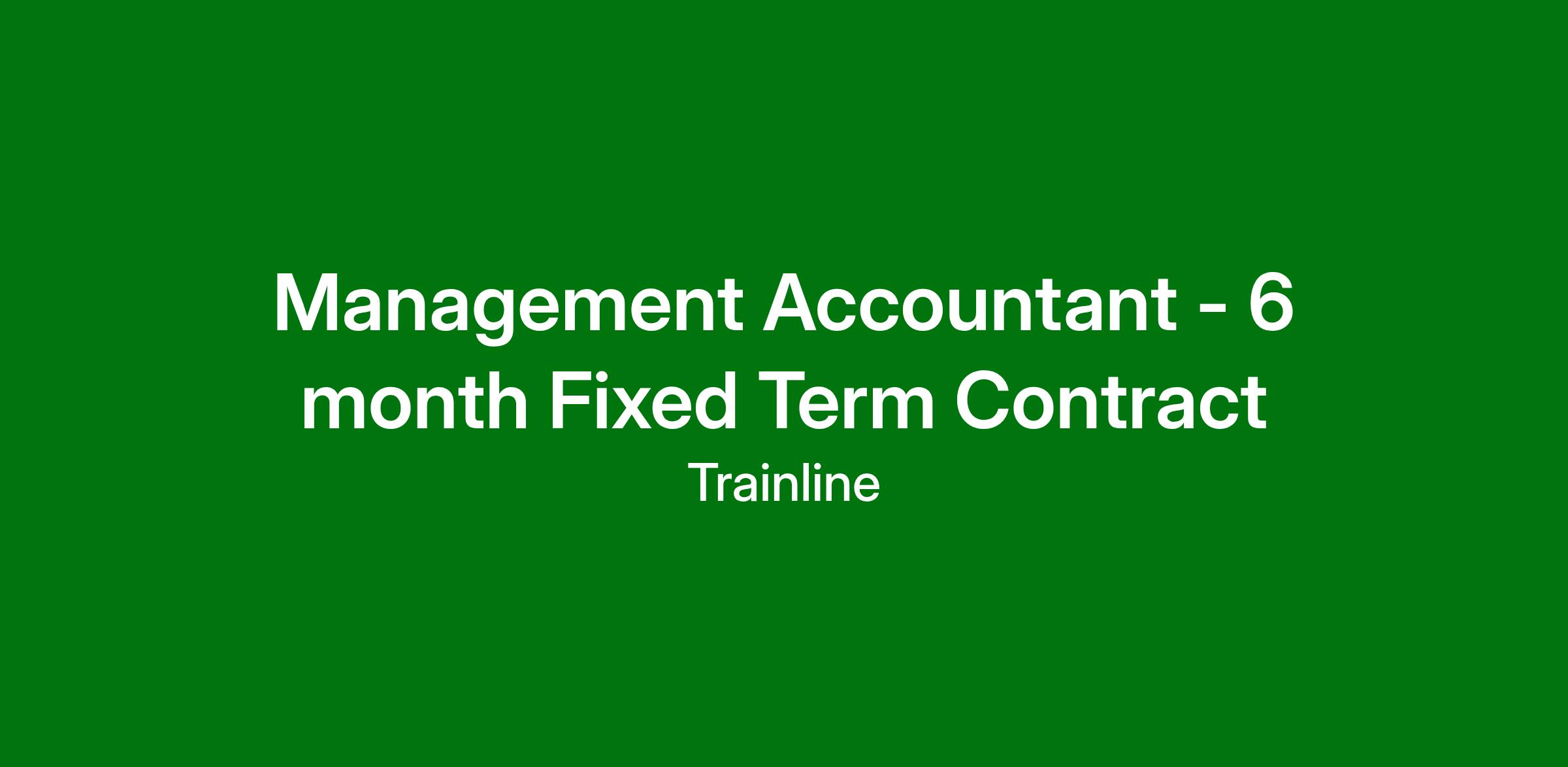Management Accountant - 6 month Fixed Term Contract