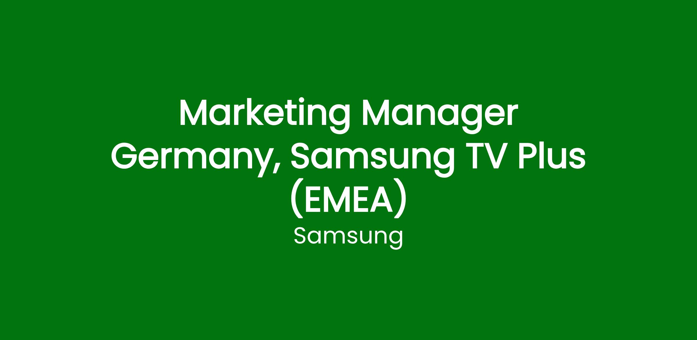 We are seeking an experienced and dynamic Brand & Growth Marketing Manager to grow awareness and usage of Samsung TV Plus in Germany and several other European markets. This role blends creativity, strategic planning with hands-on execution to strengthen brand perception, increase visibility, and excite customers about Samsung TV Plus. You will act as the brand lead for your territories to plan campaigns and creative solutions to bring our service and content offering top of mind for users.