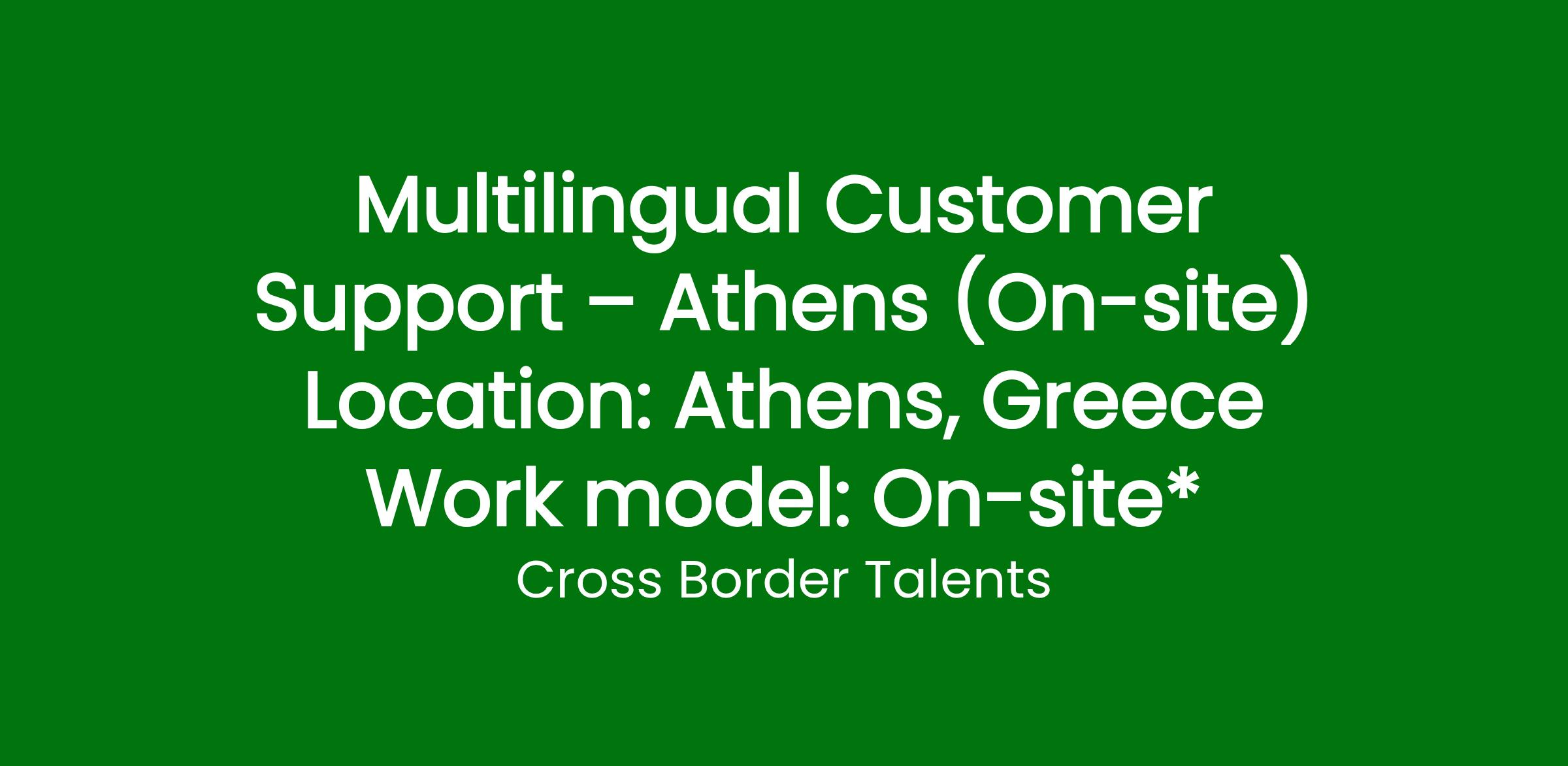 We are looking for candidates who can work on-site in Athens for our Customer Support roles, covering multiple European languages, within an international project.