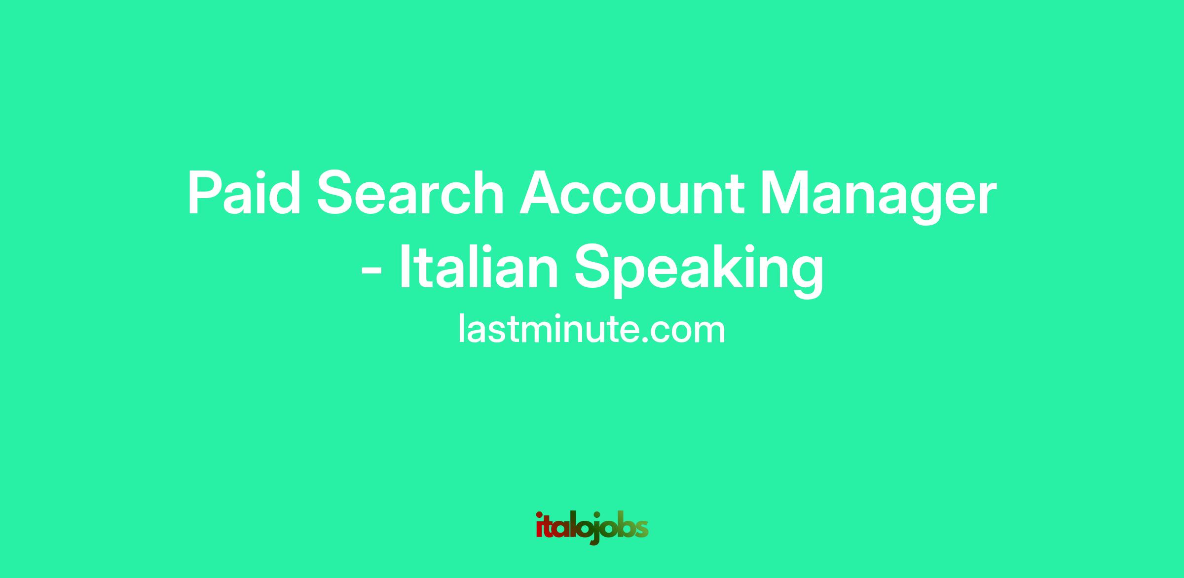 Job Title - Paid Search Account Manager - Italian Speaking