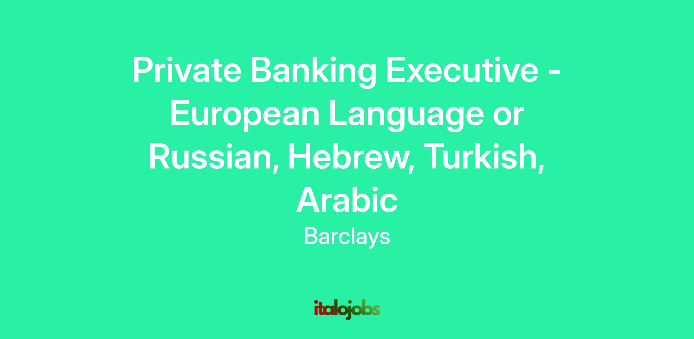 Private Banking & Wealth Management Executive | Barclays | London