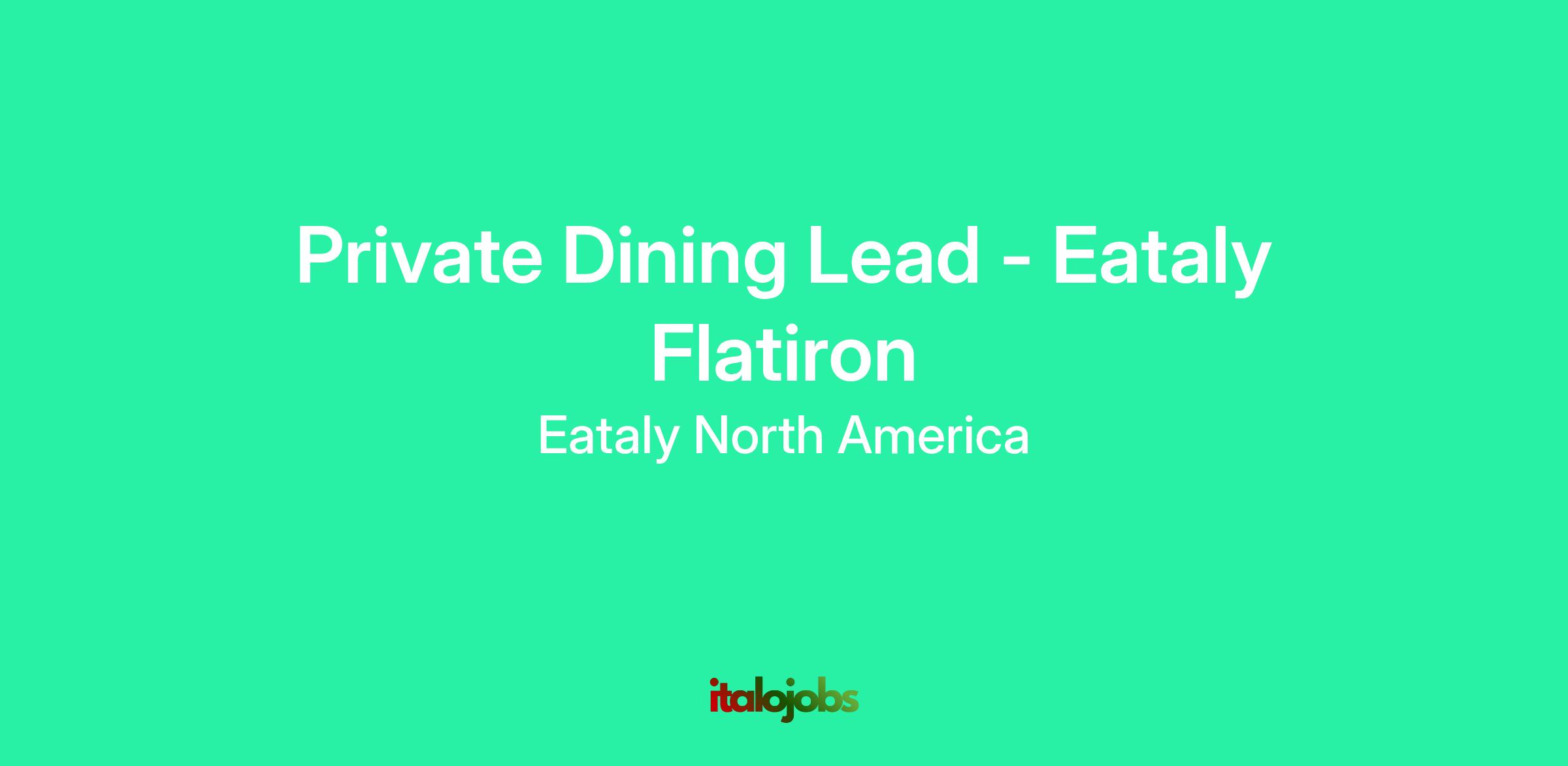 The Private Dining Lead essential support in the coordination and execution of private events, catering, and banquets across the Eataly NYC locations. Working closely with the Private Dining Manager, this role ensures clear communication with guests, accurate planning, and smooth on-site event coordination. Strong organizational skills, attention to detail, and effective communication are key to success in this position. Reports to the Private Events Sales Manager and General Manager of Restaurants.