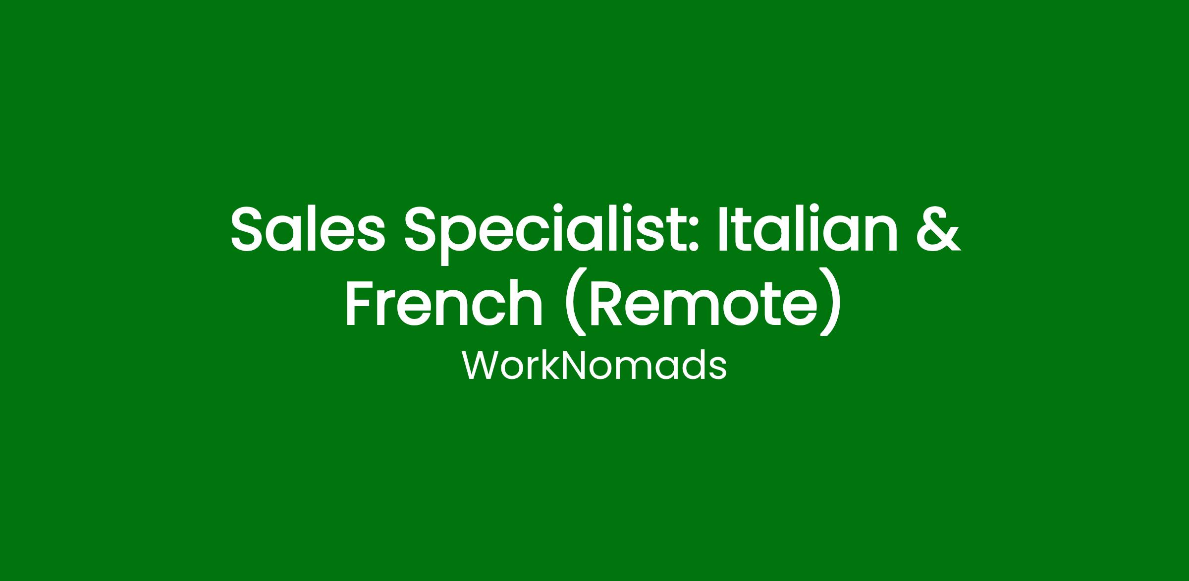 We are seeking an Italian & French speaking Sales Specialist to join our dynamic team and support an exciting project in the world of payments and trusted transactions. As part of our team, you’ll be representing an international brand and engaging with Italian customers. You will work in a remote capacity but have the opportunity to connect with colleagues and clients from around the globe.