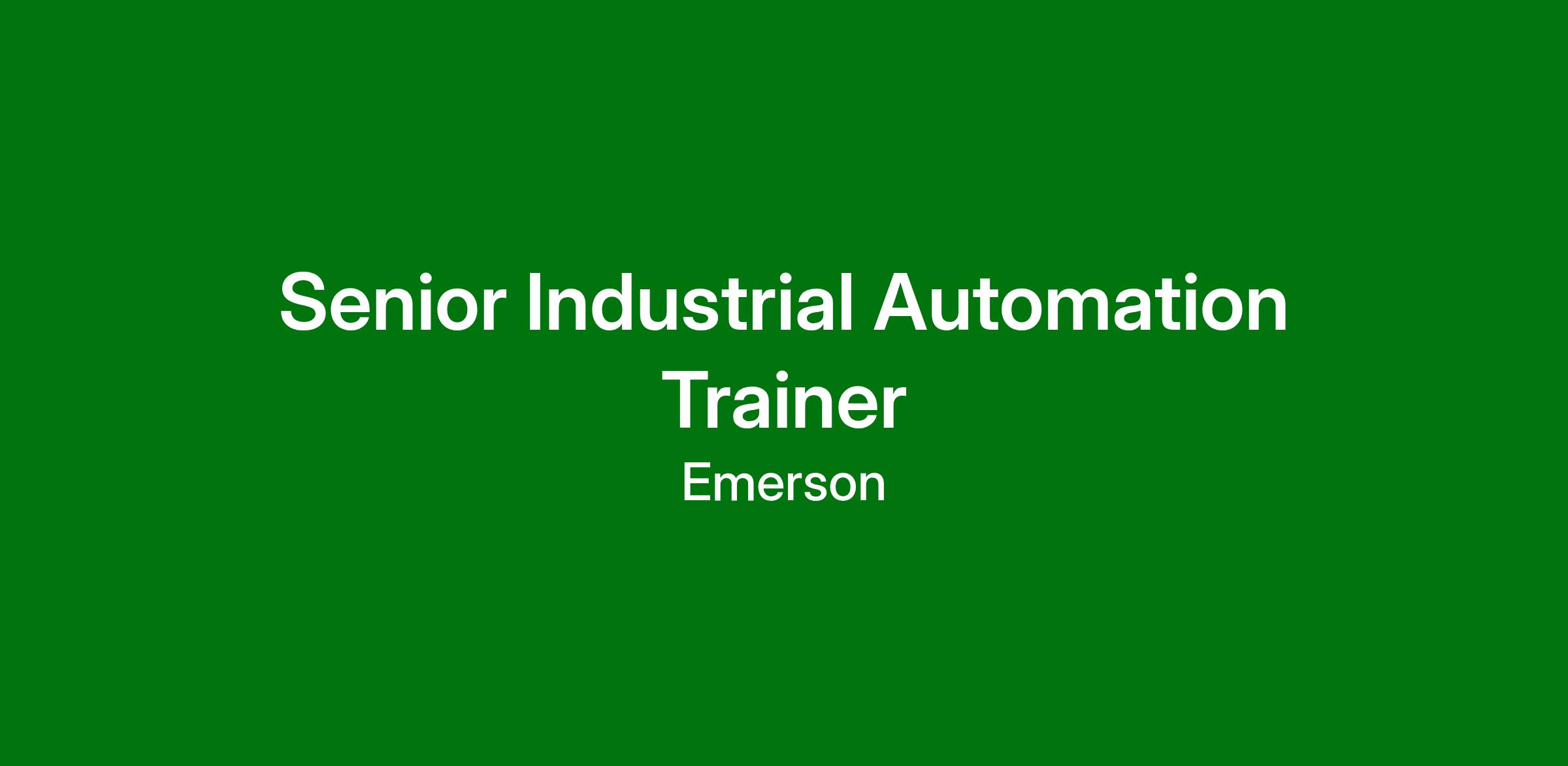 By joining Emerson as a Senior Industrial Automation Trainer, you will have a substantial role in driving progress and making an impact in a leading technological automation solutions company.
