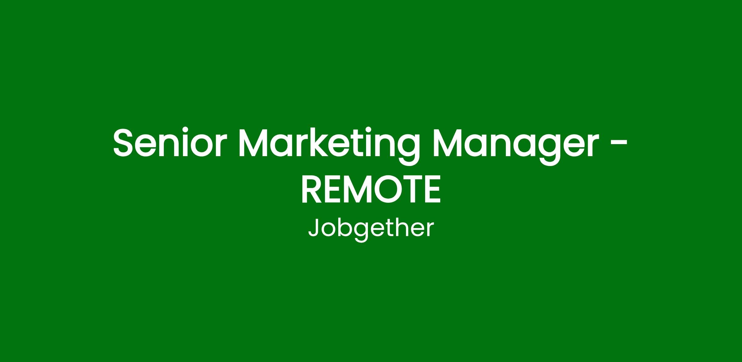 Senior Marketing Manager - REMOTE