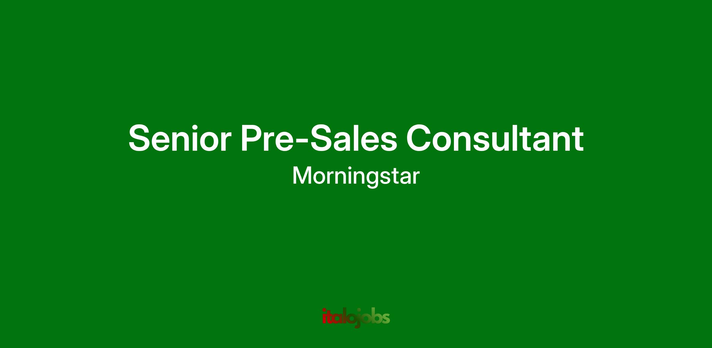 The Senior Pre-Sales Consultant plays a critical role in supporting the sales team to win new business by providing technical expertise, delivering product demonstrations, and designing solutions that align with customer needs. Acting as a bridge between sales and product teams, this role ensures proposed solutions are technically viable and meet client requirements. Using a consultative approach, you will help clients connect the dots across Morningstarās ecosystem to create meaningful value.