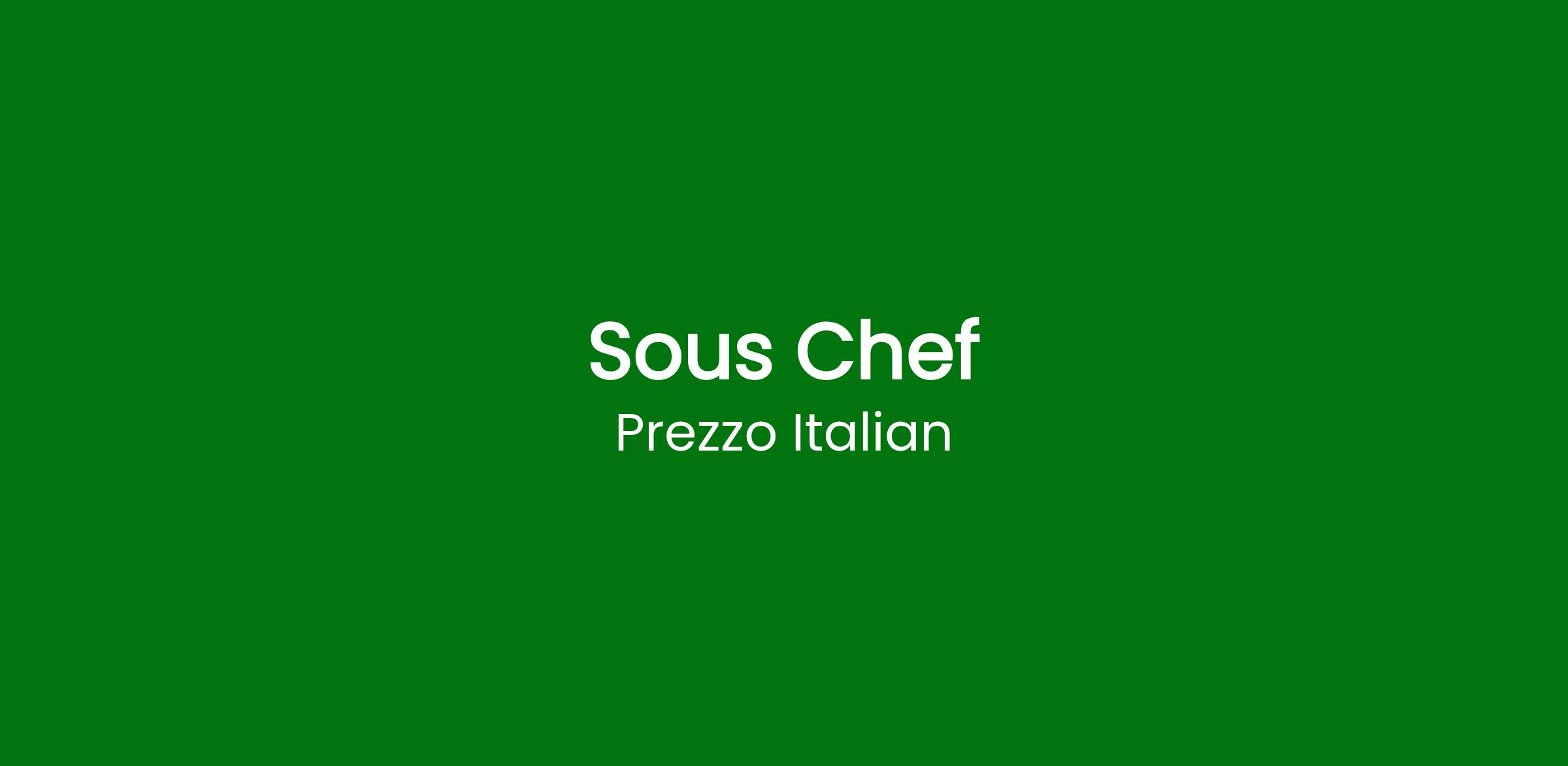 Are you ready to take the next step in your culinary journey and lead with heart? At Prezzo Italian, we’re looking for a talented Sous Chef who thrives in a vibrant kitchen, inspires their team, and brings passion, precision, and pride to every plate. Join us and be part of a team that lives and breathes our HEART culture – creating memorable food experiences that bring people together.
