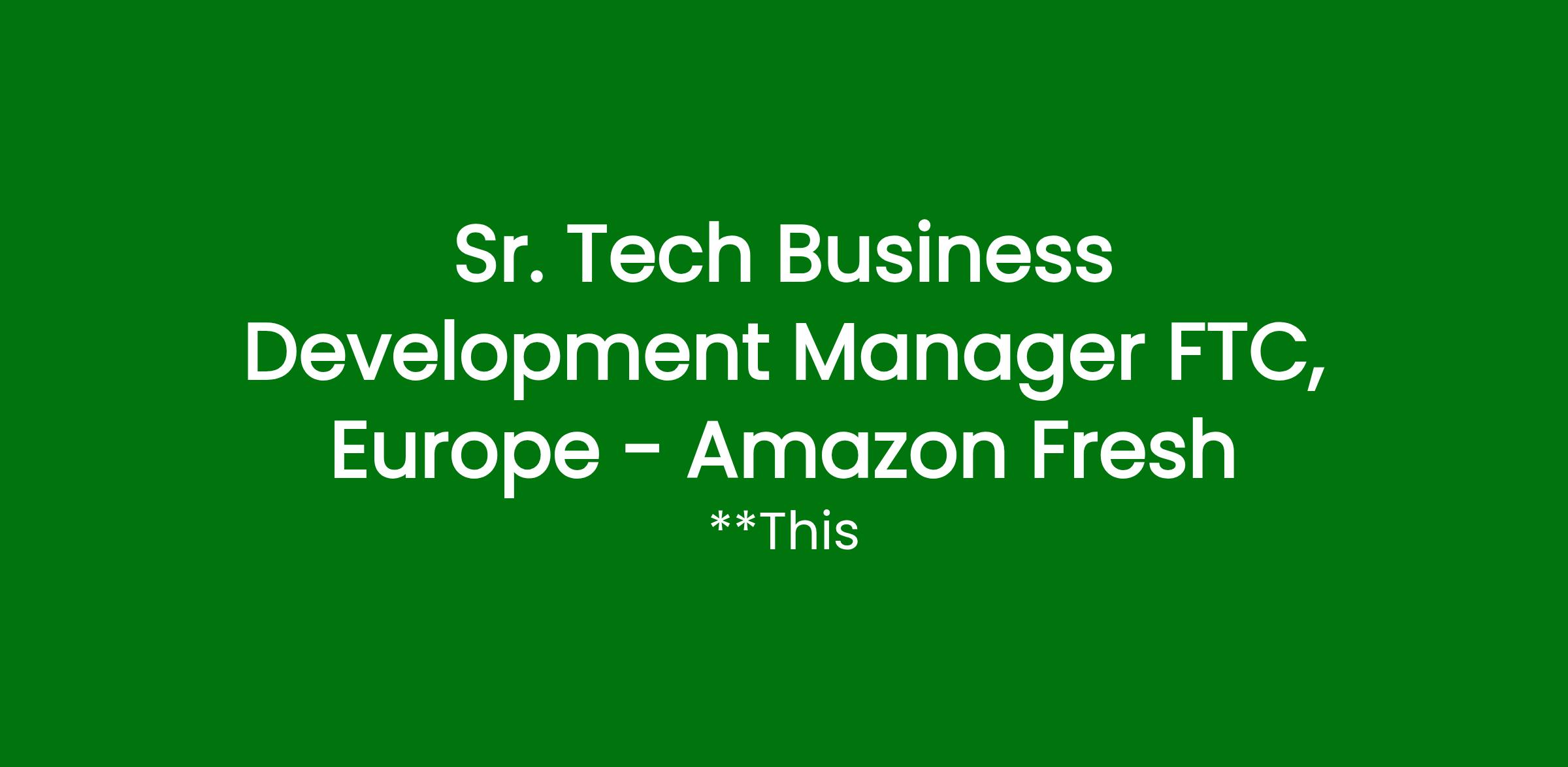 Our Amazon Fresh Worldwide Grocery Partnerships team is seeking an experienced and strategic-minded Senior Tech Business Development Manager with the passion to drive growth and build strategic partnerships between Amazon and third-party grocers across Europe. Today we have more than 30 grocery partnerships across the world (incl. Morrisons UK, Monoprix FR, Cortilia IT, Tegut DE, Harris Farm AU, and many more) and we are looking for someone to help us accelerate our growth and play a critical role in our grocery strategy by building new partnerships which will offer customers broader selection and more convenience when it comes to shopping groceries on Amazon.
