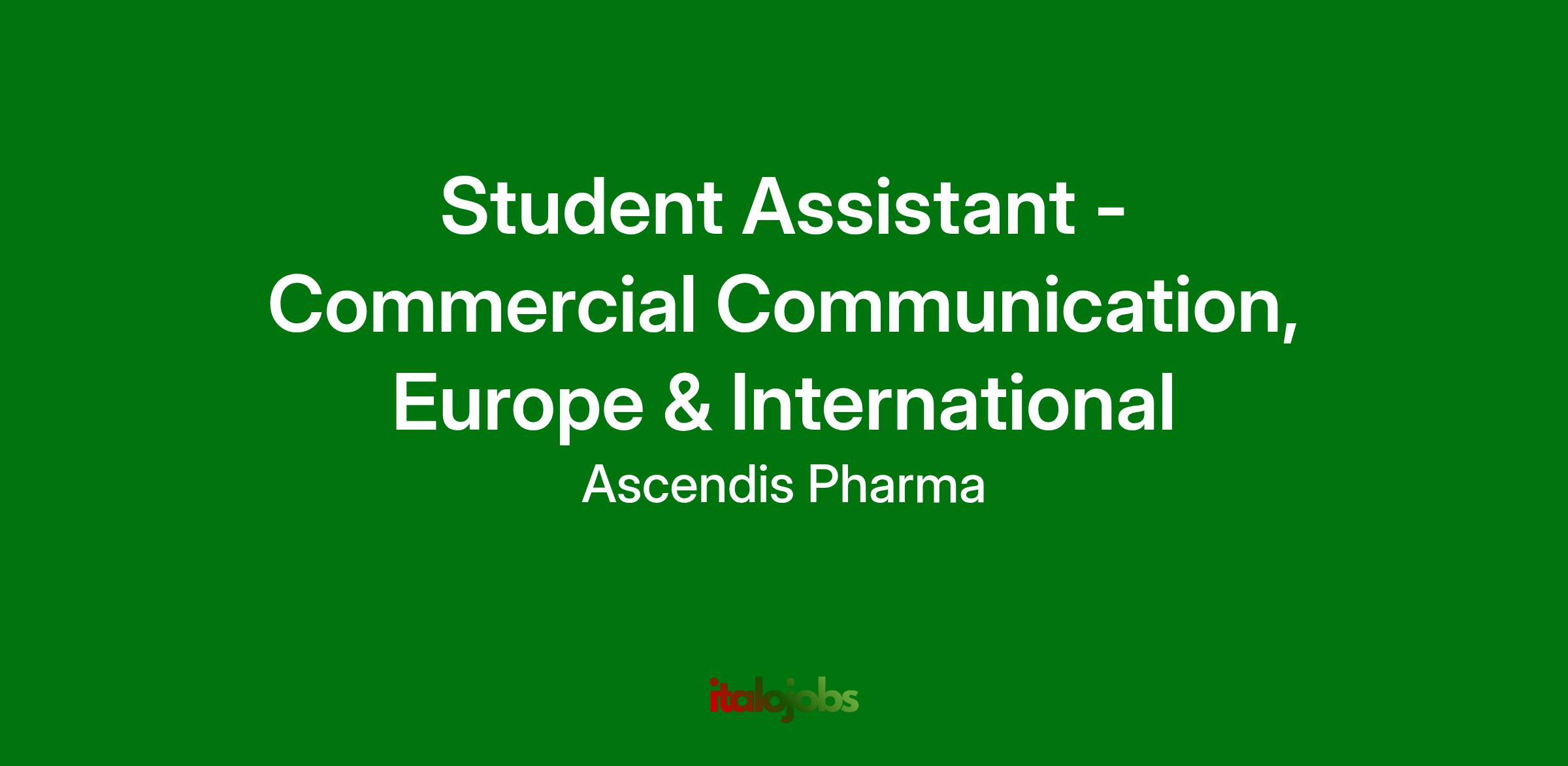 We are seeking a passionate Student Assistant – Commercial Communication to join our team. As a member of the Ascendis Pharma team, you will play a role in helping to build our communication function and channels across Europe and International markets and support our local affiliates in their local PR and communication activities. This is an exciting opportunity to work in a fast-paced environment and collaborate with both local and global cross-functional teams while gaining experience across multiple communication disciplines to make a difference for patients living with rare endocrine diseases.