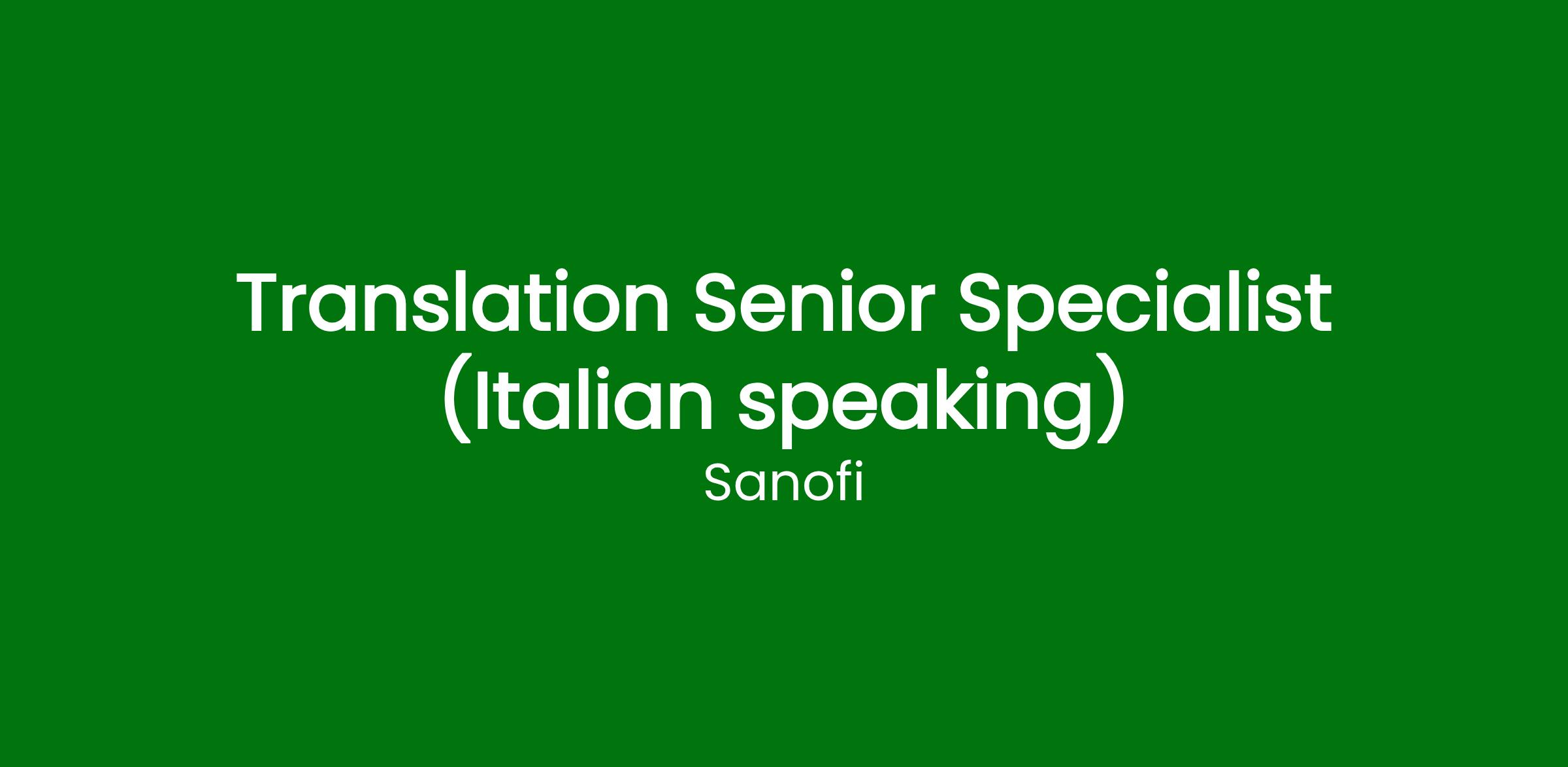 Job title: Translation Senior Specialist (Italian speaking)