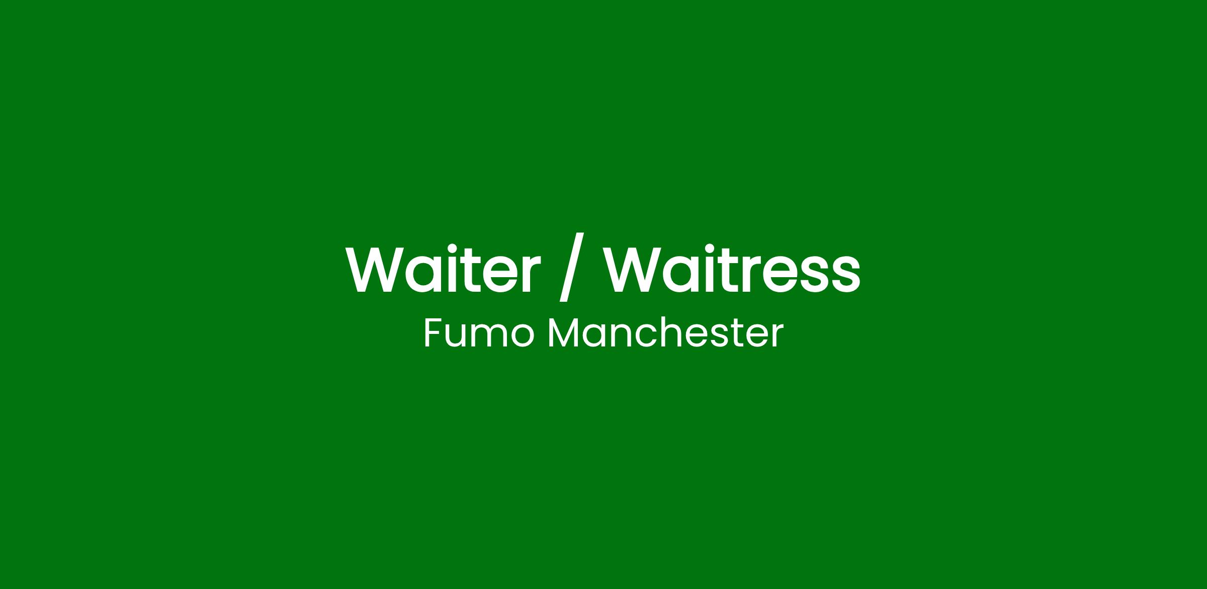 Fumo Manchester are hiring a Waiter/ Waitress!