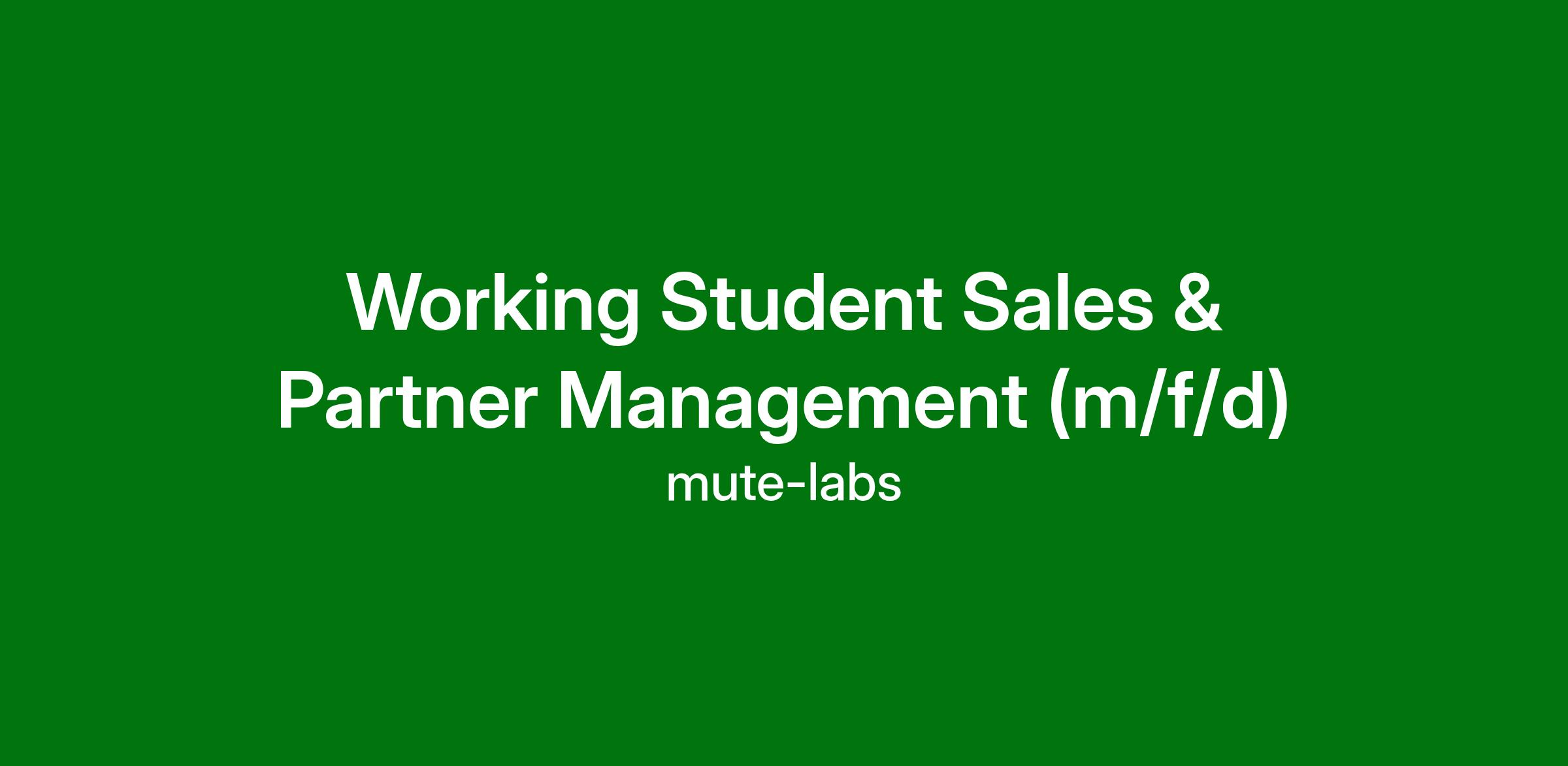 Working Student Sales & Partner Management (m/f/d)
